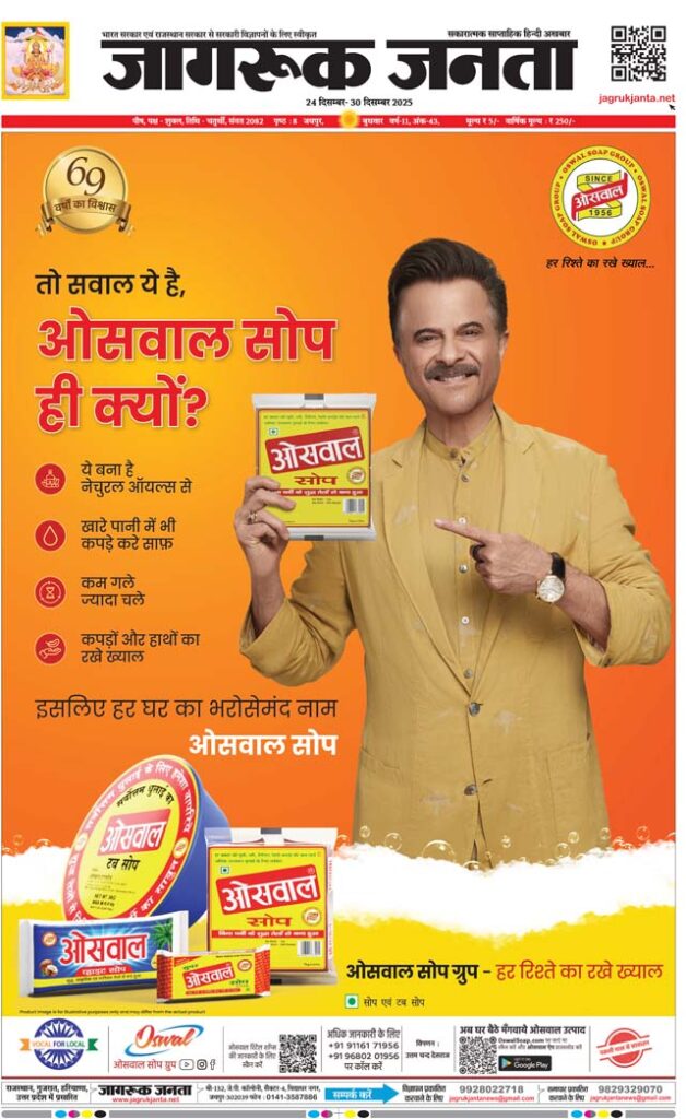 Jagruk Janta Hindi News Paper 24 December 2025 Jagruk Janta 24 December 2025Download By: Jagruk Janta Date: December 25, 2025 Join Our Whatsapp Channel Previous articleJagruk Janta Hindi News Paper 17 December 2025Next articleगुजरात के 35 B N एन सी सी यूनिट का पर्वतारोहण शिविर प्रारम्भ Jagruk Janta Share post: FacebookTwitterPinterestWhatsApp SubscribeI want inI've read and accept the Privacy Policy. Popular जसोल Dham में Somnath ज्योतिर्लिंग के पावन अंश के दिव्य दर्शन माउंट abu की पर्वतीय वादियों से शुरू हुआ aravli बचाओ अभियान गुजरात के 35 B N एन सी सी यूनिट का पर्वतारोहण शिविर प्रारम्भ Jagruk Janta Hindi News Paper 17 December 2025 22 दिसंबर से खुल रहा Shyam धानी इंडस्ट्रीज Limited का IPO, प्राइस बैंड ₹70, ग्रेमार्केट में अभी से ही तेजी More like thisRelated जसोल Dham में Somnath ज्योतिर्लिंग के पावन अंश के दिव्य दर्शन Jagruk Janta - December 25, 2025 सनातन आस्था, आध्यात्मिक चेतना एवं सांस्कृतिक वैभव का ऐतिहासिक... माउंट abu की पर्वतीय वादियों से शुरू हुआ aravli बचाओ अभियान Jagruk Janta - December 25, 2025 कांग्रेस के निर्मल चौधरी सहित कद्दावर नेता संयम लोढ़ा... गुजरात के 35 B N एन सी सी यूनिट का पर्वतारोहण शिविर प्रारम्भ Jagruk Janta - December 25, 2025 माउंट आबू @ जागरूक जनता। माउंट आबू के स्वामी... Jagruk Janta Hindi News Paper 17 December 2025 Jagruk Janta - December 17, 2025