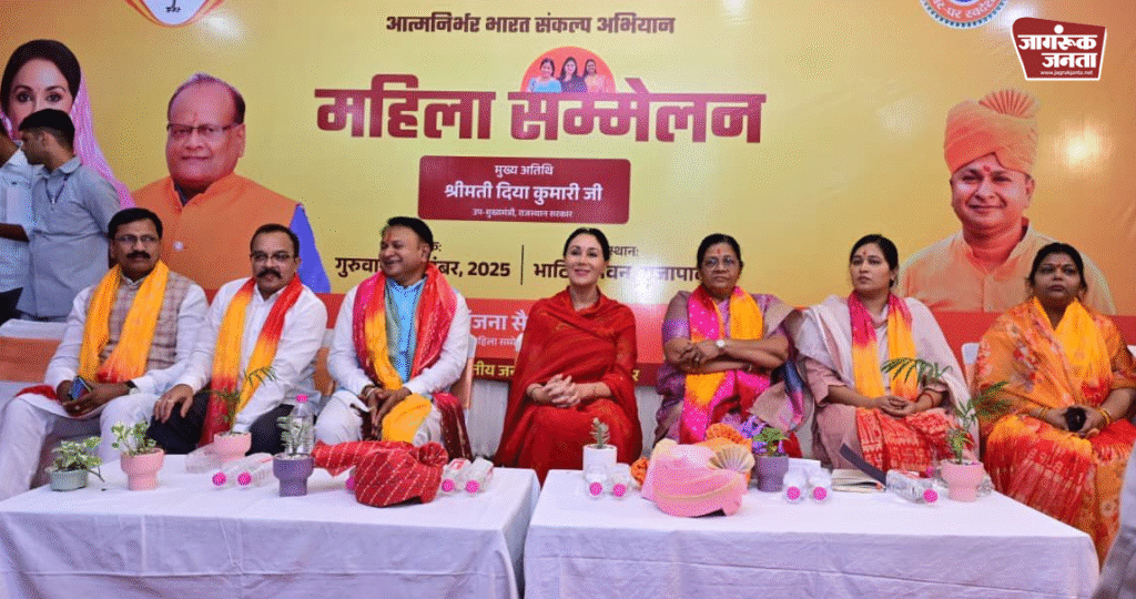 जयपुर। भाजपा जयपुर शहर की ओर से आत्मनिर्भर भारत संकल्प अभियान के तहत आयोजित विराट महिला सम्मेलन गुरुवार को राजापार्क स्थित भाटिया भवन में भव्य रूप से सम्पन्न हुआ। कार्यक्रम में राजस्थान सरकार की उपमुख्यमंत्री दिया कुमारी मुख्य अतिथि के रूप में शामिल हुईं।