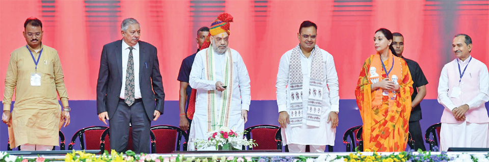 जयपुर। केन्द्रीय गृह एवं सहकारिता मंत्री श्री अमित शाह ने सोमवार को मुख्यमंत्री श्री भजनलाल शर्मा की उपस्थिति में सीतापुरा स्थित जयपुर एग्जीबिशन एवं कन्वेंशन सेंटर (जेईसीसी) में 9 हजार 300 करोड़ रुपये से अधिक के विकास कार्यों का शिलान्यास व लोकार्पण किया। श्री शाह नवीन आपराधिक कानूनों पर आयोजित राज्य स्तरीय 6 दिवसीय प्रदर्शनी ’नव विधान-न्याय की नई पहचान’ के उद्घाटन के लिए जयपुर आए थे।